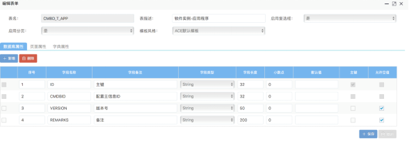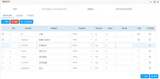 針對每個資產配置類別,流程管理中心通過圖形界面提供詳細的屬性設置,包括名稱、字段類型、默認值、描述等,并可添加自定義屬性。整個定義無需任何編碼。同時,還可以對不同分類的配置項定義不同的配置項編碼生成規則