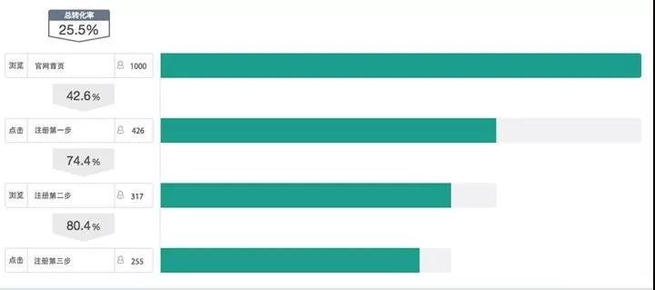 圖5:通過【漏斗分析】監(jiān)測到的用戶注冊轉(zhuǎn)化過程