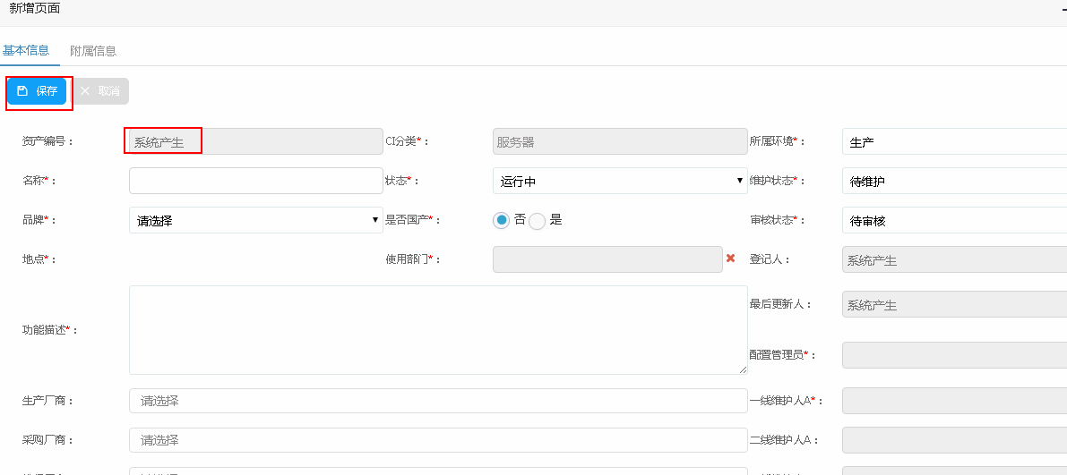 頁面上標(biāo)有系統(tǒng)產(chǎn)生字樣的,代表提交之后自動生成字段值,填寫信息之后點擊保存。