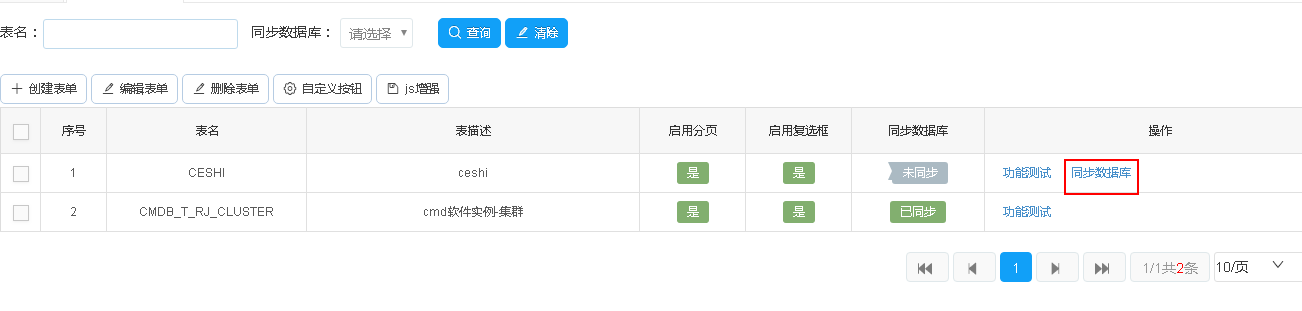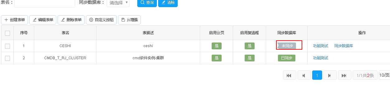 創(chuàng)建完成數(shù)據(jù)庫后,返回數(shù)據(jù)庫表列表中會看見新增的數(shù)據(jù)或當(dāng)前修改過的數(shù)據(jù),狀態(tài)變化為“未同步”