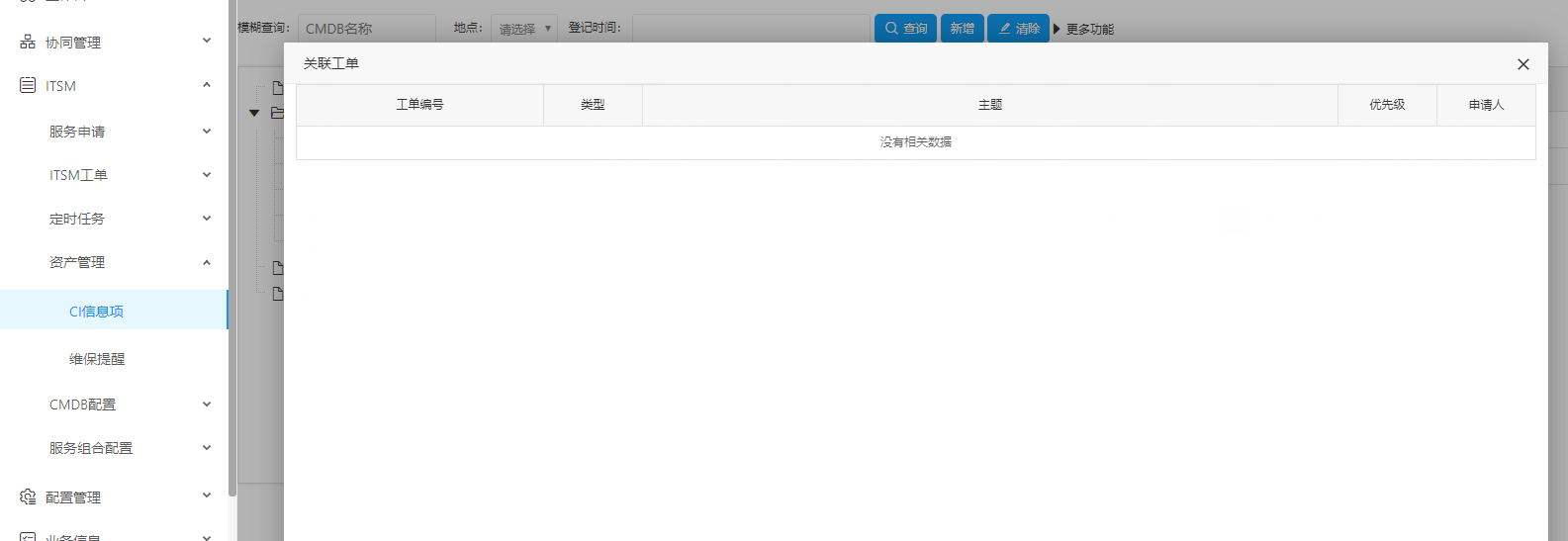 關(guān)聯(lián)工單:通過事件流程或變更流程關(guān)聯(lián)設(shè)備信息,可以在設(shè)備中看到關(guān)聯(lián)工單。