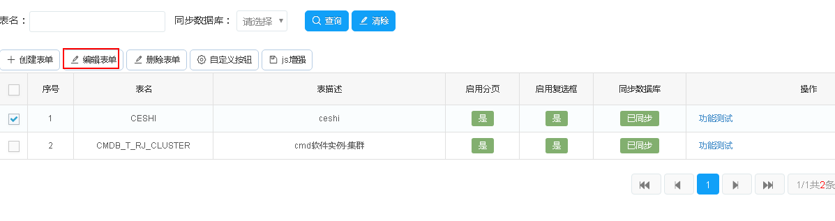 編輯表單是在已有數(shù)據(jù)庫表中進行修改,選擇需要編輯的行點擊編輯表單按 鈕。編輯完成后,數(shù)據(jù)庫狀態(tài)會變?yōu)槲赐剑龠M行數(shù)據(jù)庫同步操作完成編輯表單。