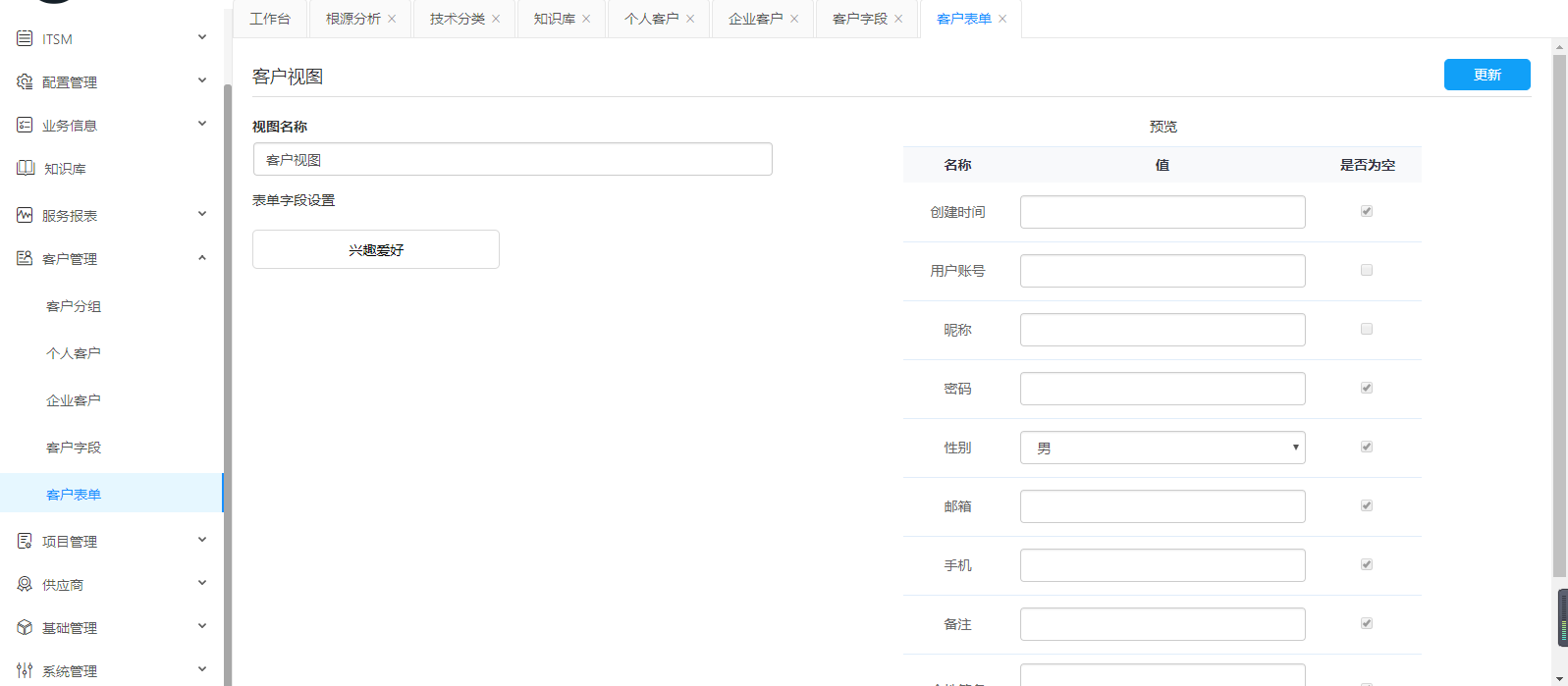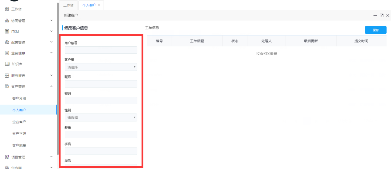 客戶表單主要是由客戶字段生成,選擇需要的字段來生成客戶表單。