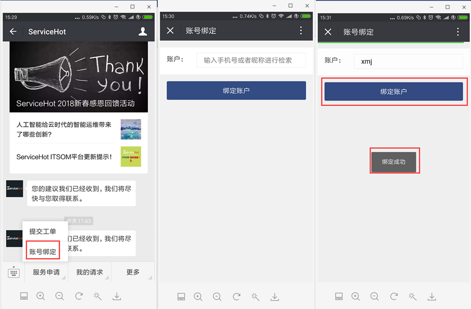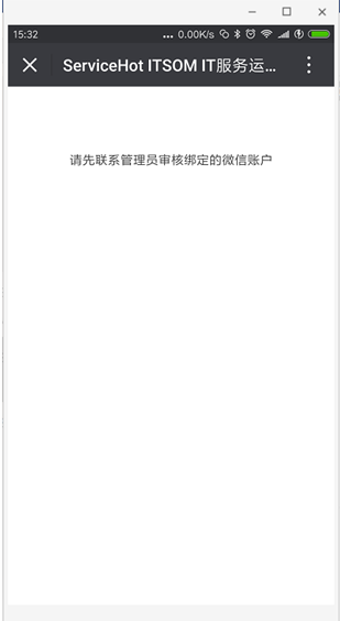 關(guān)注自己公司的微信公眾號后,需要進行賬號綁定及管理員審核,如下圖所示:
