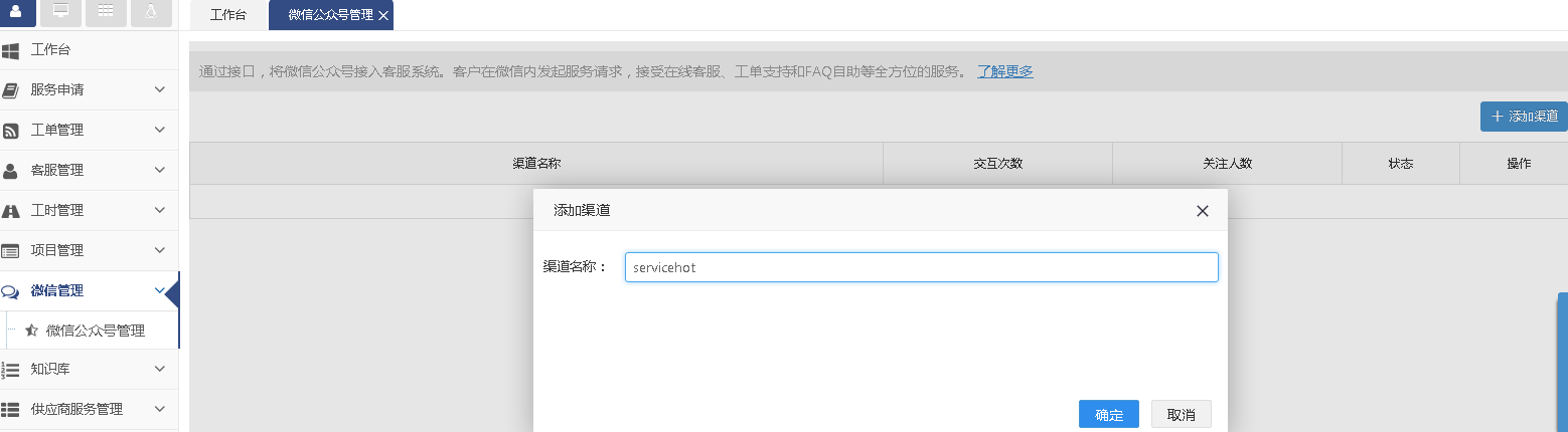 點擊“添加渠道”,進入添加微信渠道頁面,如下圖