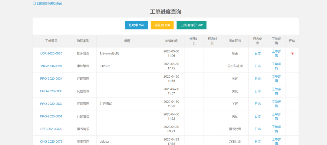 工單進(jìn)度查詢