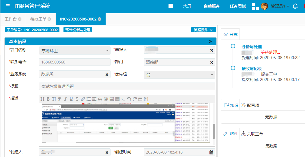 通過(guò)統(tǒng)一認(rèn)證、單點(diǎn)登錄,用戶進(jìn)入自助門戶后可一鍵查詢工單處理進(jìn)度,進(jìn)入工單詳情進(jìn)行反饋和催辦。