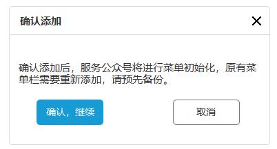 在添加微信公眾號渠道的時候,用戶最終確認添加,會彈出信息框提示。