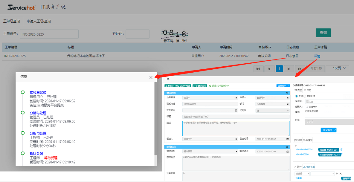 查詢工單處理日志及工單詳情