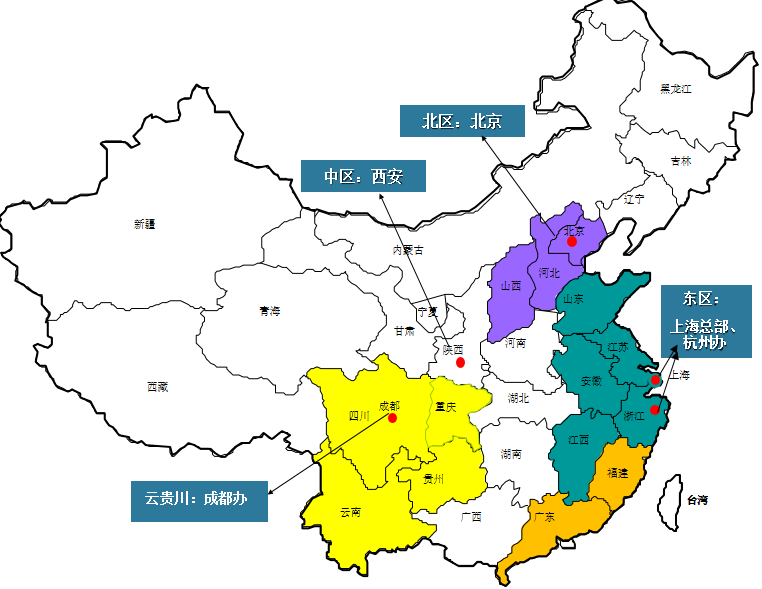 再來看看上海博安在全國范圍內(nèi)的網(wǎng)點分布情況: