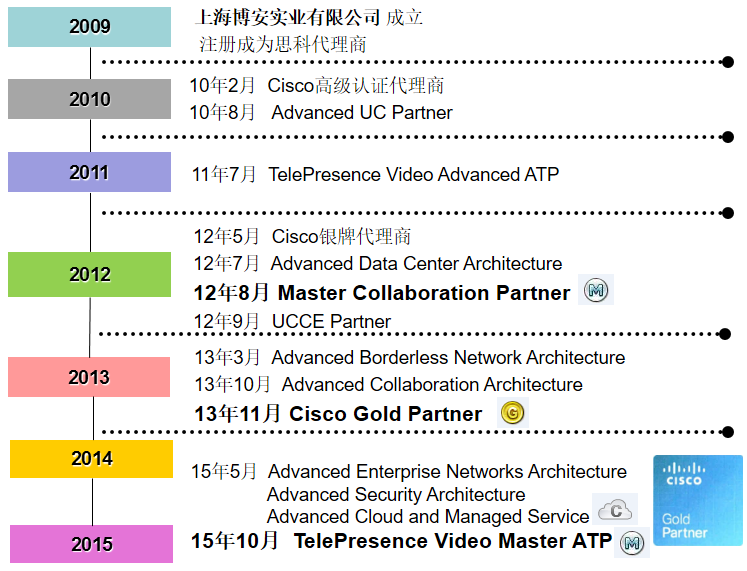 從2009年注冊成為思科代理商,僅僅用了4年時間,上海博安就已經(jīng)一躍成為思科金牌代理商。眾所周知,思科共提供了三個合作伙伴認證等級,從低到高分別為:高級認證代理商、銀牌認證代理商和金牌代理商。博安作為思科渠道合作伙伴,其認證等級的提升,直接反映了其在關(guān)鍵技術(shù)領(lǐng)域的技能廣度,以及客戶認可程度的雙重提升。