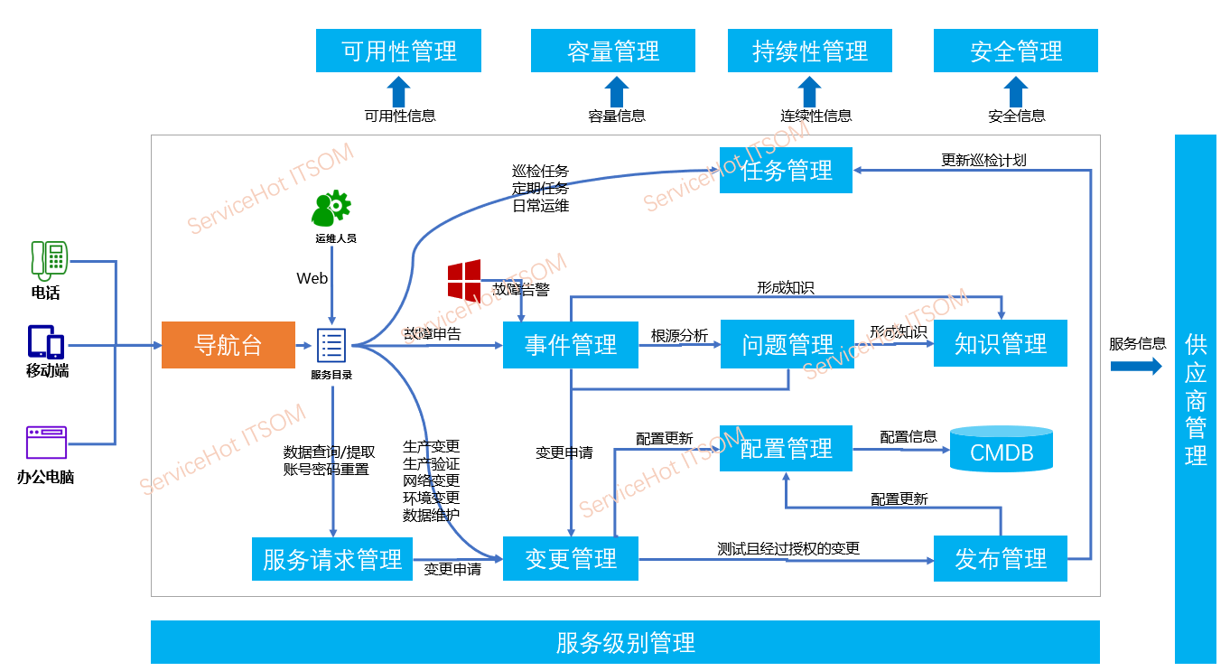 ServiceHot 提供基于ServiceHot ITSM2.0(IT服務管理系統)、ServieHot ITSOM(IT服務運營管理平臺)、ServiceHot RM 遠程運維平臺的產品級服務和 SaaS 云服務。