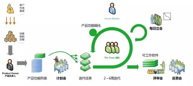 3個角色:產(chǎn)品負責人(Product Owner)、Scrum Master、Scrum團隊3個工件