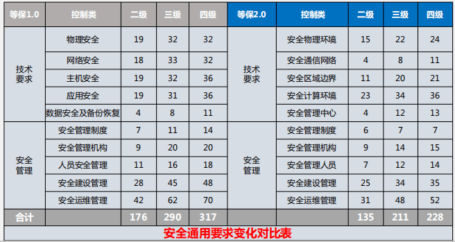 2.0對基本要求項進行了優(yōu)化精煉,通用安全要求中測評指標比之前減少了。